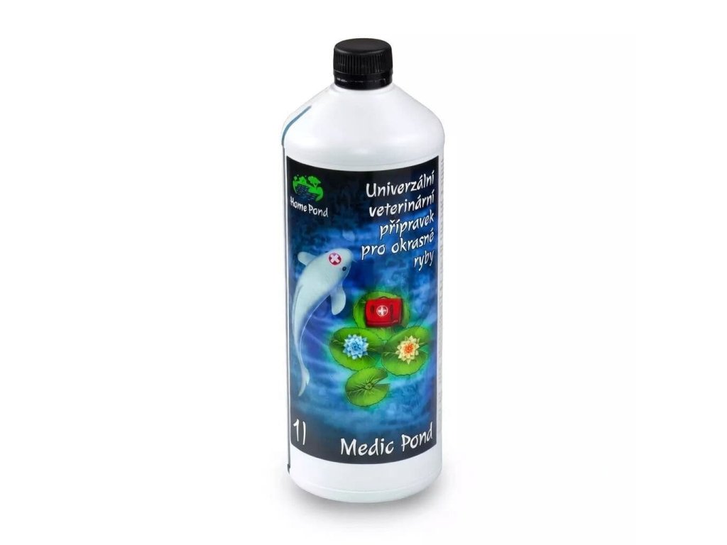 Medic Pond je kombinací tří širokospektrálně působících látek, účinkuje antiparaziticky, antibakteriálně a antimykoticky. Přípravek je vhodné použít i přidání nových ryb do jezírka.